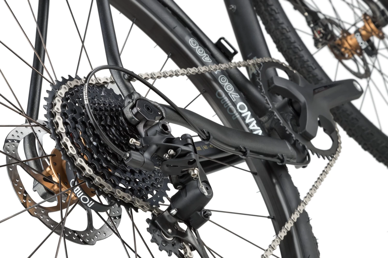 Die TwinTip Gabel des RUUT wurde neu überarbeitet und ist dank der Fly Carbon Technologie nun leichter, horizontal steifer und vertikal nachgiebiger. Rondos Markenzeichen ist zudem ausgerüstet mit diversen Ösen zur Montage eines Rack’s und Flaschenhaltern.